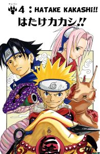 A capa do capítulo 4 (começo do começo de tudo) é o time 7 em cima de seus respectivos futuros animais: Sasuke em uma serpente, Naruto em um sapo e Sakura em uma lesma. O que foi acontecer muitos anos depois, quando todos treinaram com os Sannins.
