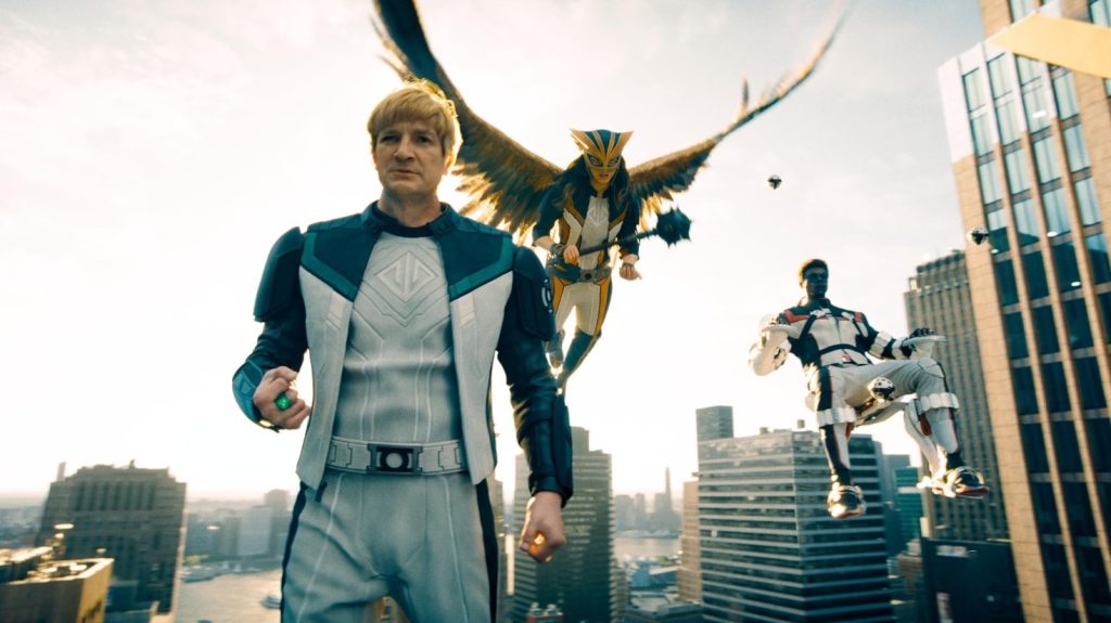 Lanterna Verde (Nathan Fillion), Mulher Gavião (Isabela Merced) e Senhor Incrível (Edi Gathegi) (Divulgação/Warner)