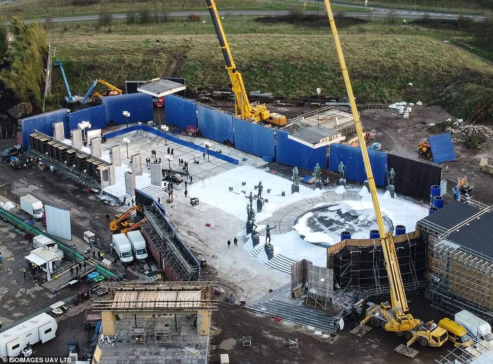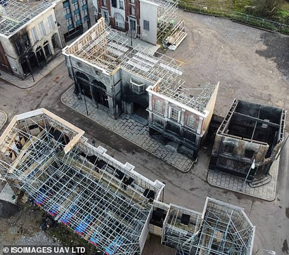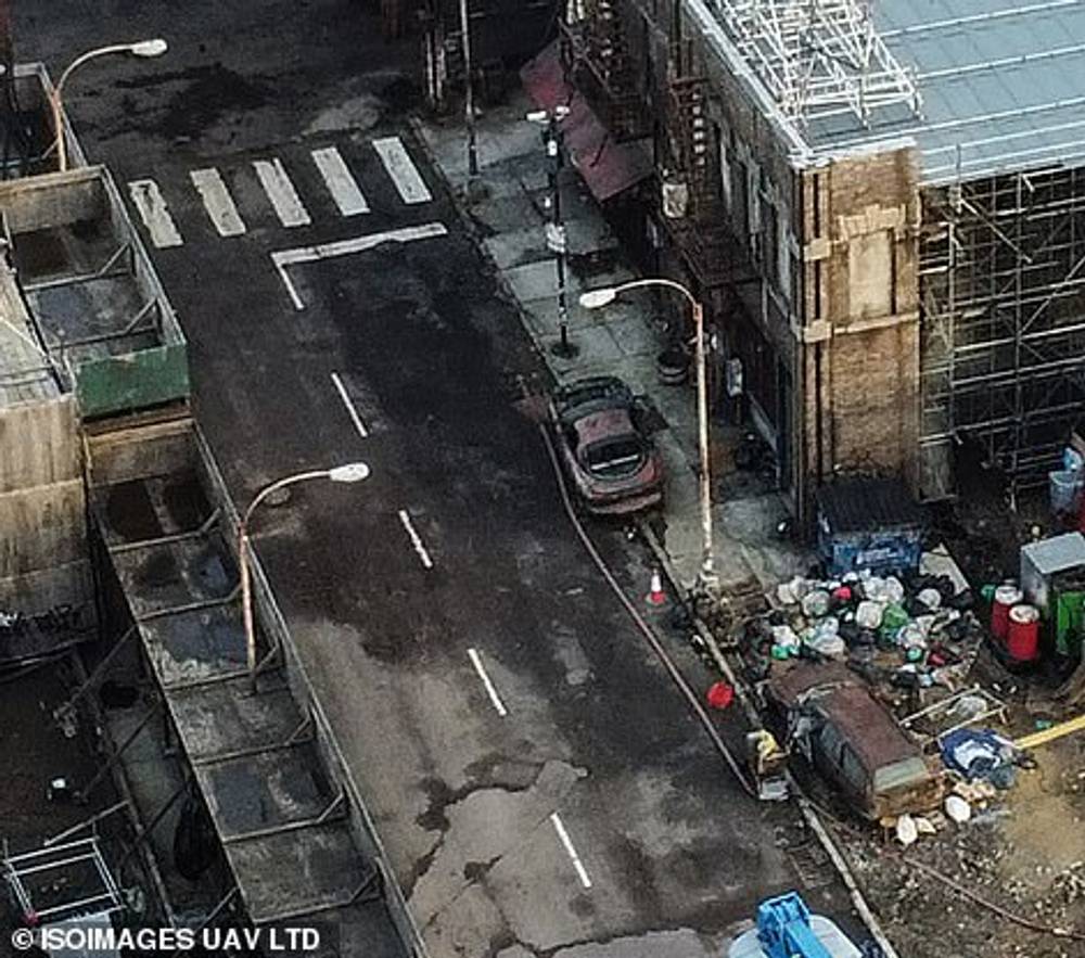 As imagens foram publicadas pelo Daily Mail e mostram o set visto de cima. Gotham pode ser vista com seus becos e ruas bem característicos, além de uma praça com um visual que remete ao filme do Batman dirigido por Tim Burton em 1989.