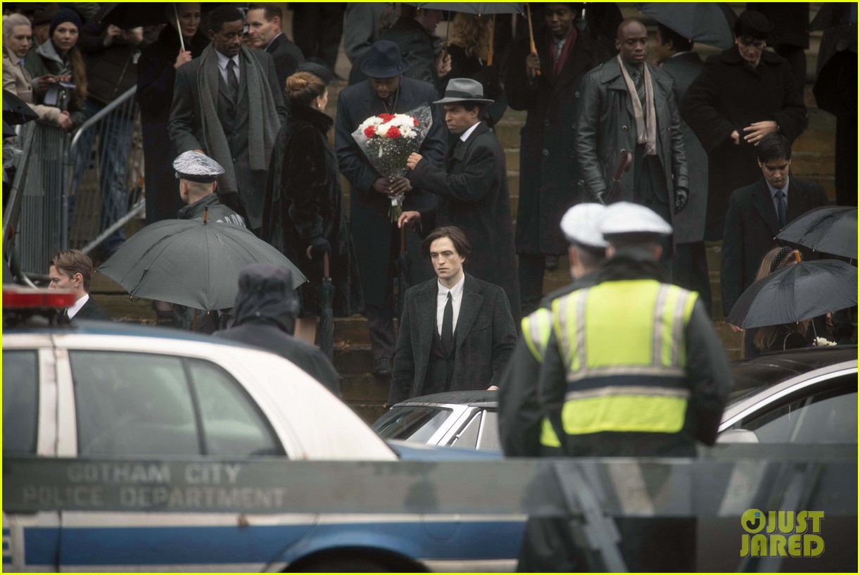 A cena em questão parece mostrar um funeral, talvez do prefeito de Gotham ou de alguém importante. As imagens foram divulgadas pelo site Just Jared.