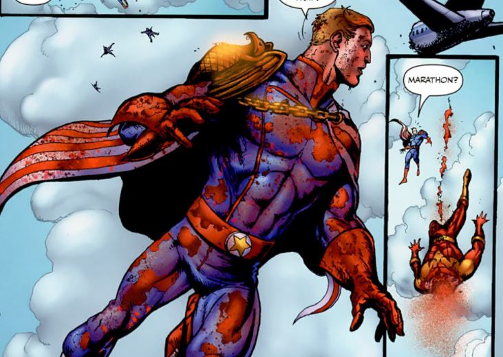Para seu azar, Mister Maratona morreu de uma maneira pra lá de terrível e sombria por conta do Patriota.