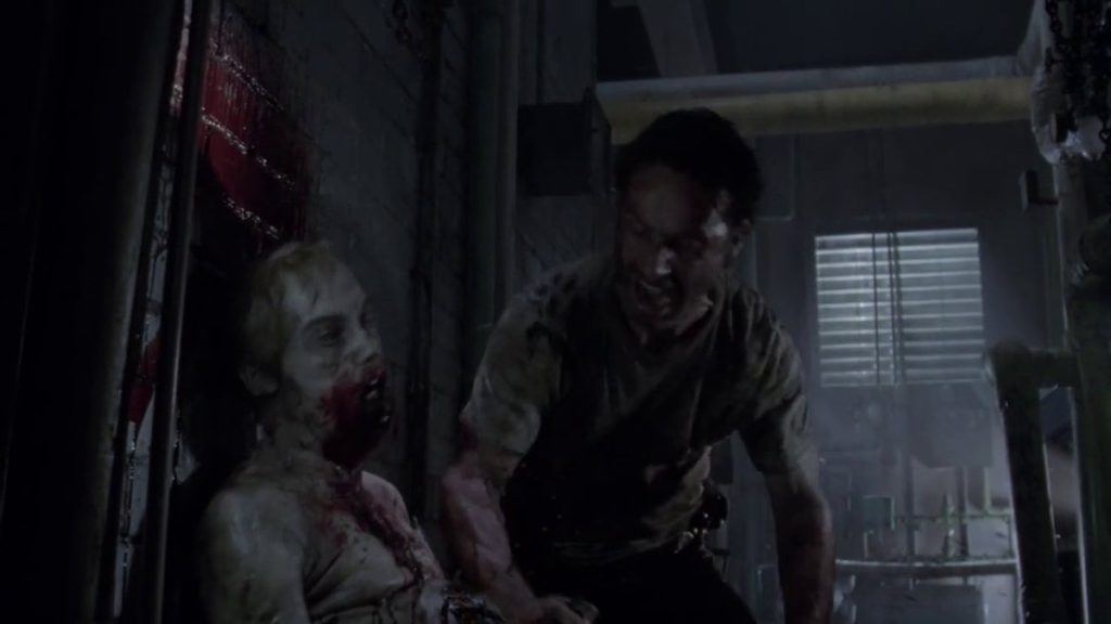 Para piorar a situação, Lori, que estava grávida de Judith, entrou em trabalho de parto justamente nesse momento complicado. Maggie teve de fazer a cesárea sem qualquer tipo de anestesia e a esposa de Rick morreu.