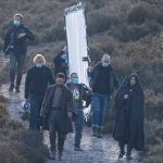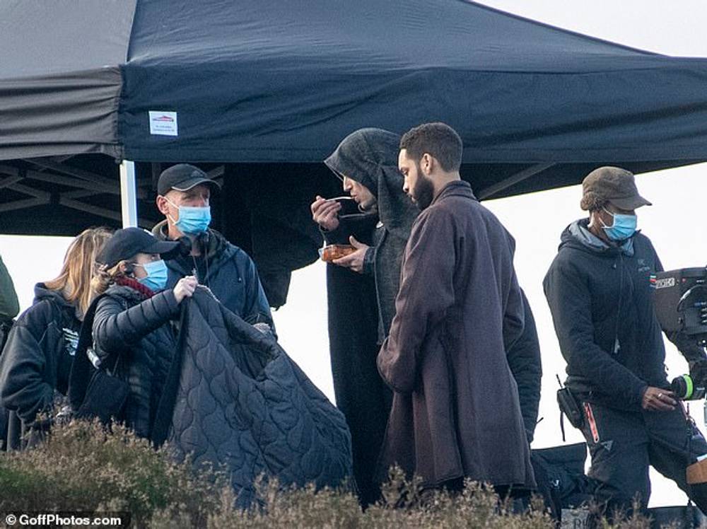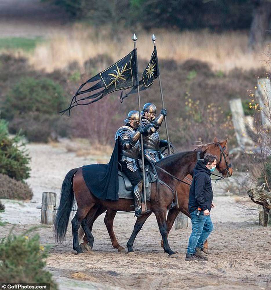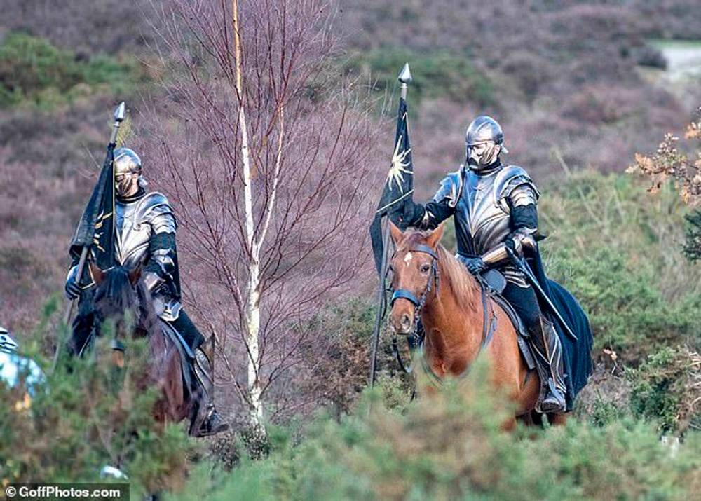 As fotos são do site Redaninan Intelligence e mostram Henry Cavill (Geralt de Rivia), Anya Chalotra (Yennefer de Vengerberg) e Royce Pierreson (Istredd) juntos.
