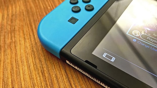 O meu está mostrando alguns arranhões após apenas uma semana de uso. Sou super cuidadoso com ele e sempre envolvo em meias de lã gigantes quando vou transportá-lo, mas já está riscado no canto inferior esquerdo. O culpado? Deslizá-lo dentro e fora do suporte de plástico rígido. Se você deslizar suavemente o console pra dentro do slot – e talvez fazer algum malabarismo -, consegue não raspar o Switch contra o interior duro do suporte. É estranho que a Nintendo não tenha alinhado o interior da coisa com algo suave e confortável pra evitar isso. Então… No caso de você estar se perguntando: sim, você provavelmente vai querer comprar um protetor de tela.