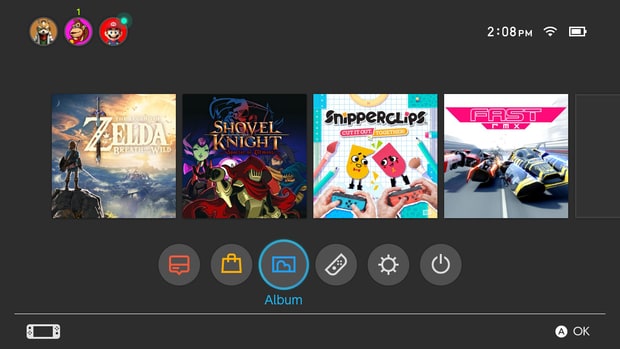 Quando você faz uma captura de tela, o Switch salva tudo no cartão microSD – se houver um conectado – ou salva na memória do sistema. Você pode acessá-las a partir do ícone “Album” na página inicial, mas vale a pena notar que as capturas de tela não estão associadas à conta de usuário específico. Se você estiver compartilhando seu Switch com outros em sua família, as telas de todos estão na mesma pasta. Se quiser compartilhá-las no Facebook ou Twitter, quando você clicar em “Post”, o Switch irá perguntar qual usuário quer compartilhá-las e vai ignorar qualquer outra conta social que não estiver associada a esse usuário pra que as capturas vão pro lugar certo. Se você não quiser compartilhar com uma rede social, precisa tirar o cartão microSD de seu slot e usar um adaptador pra conectá-lo em seu computador e pegar as imagens.